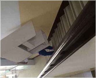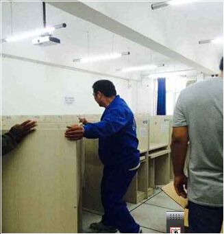 长沙搬家公司员工背办公家具下楼现场图